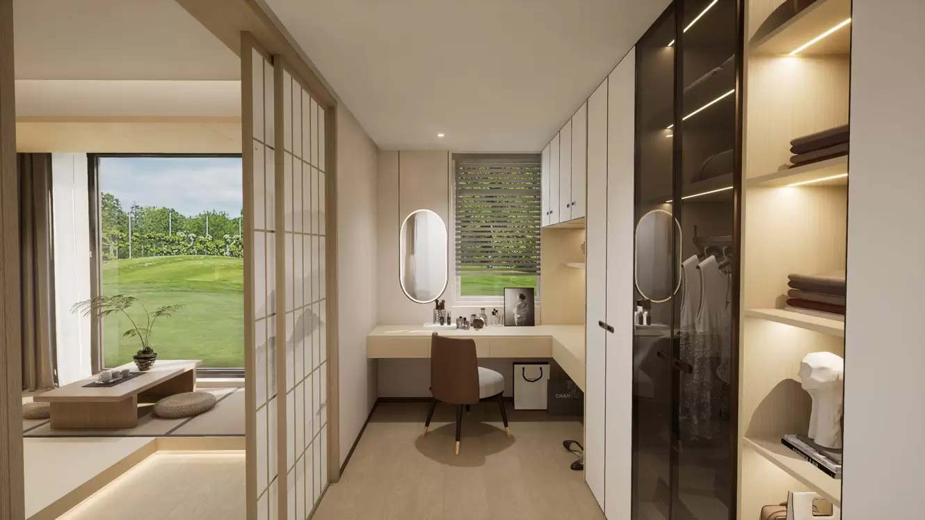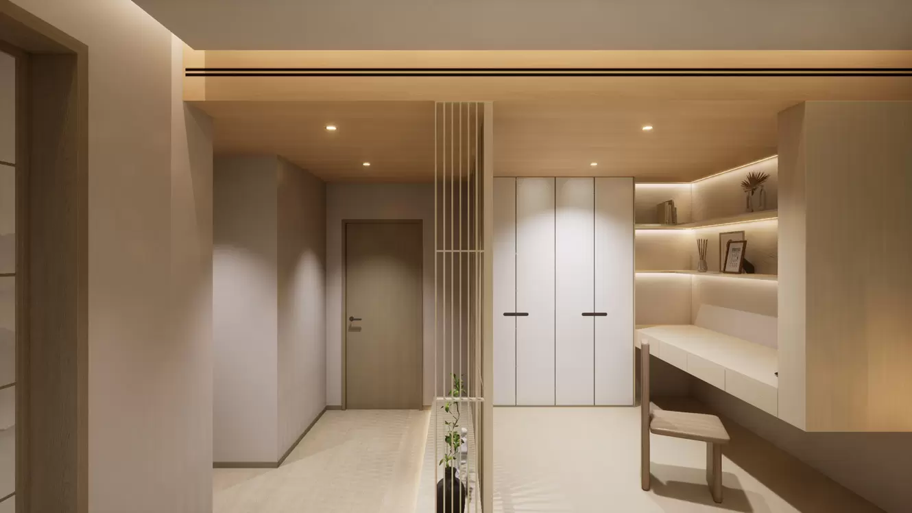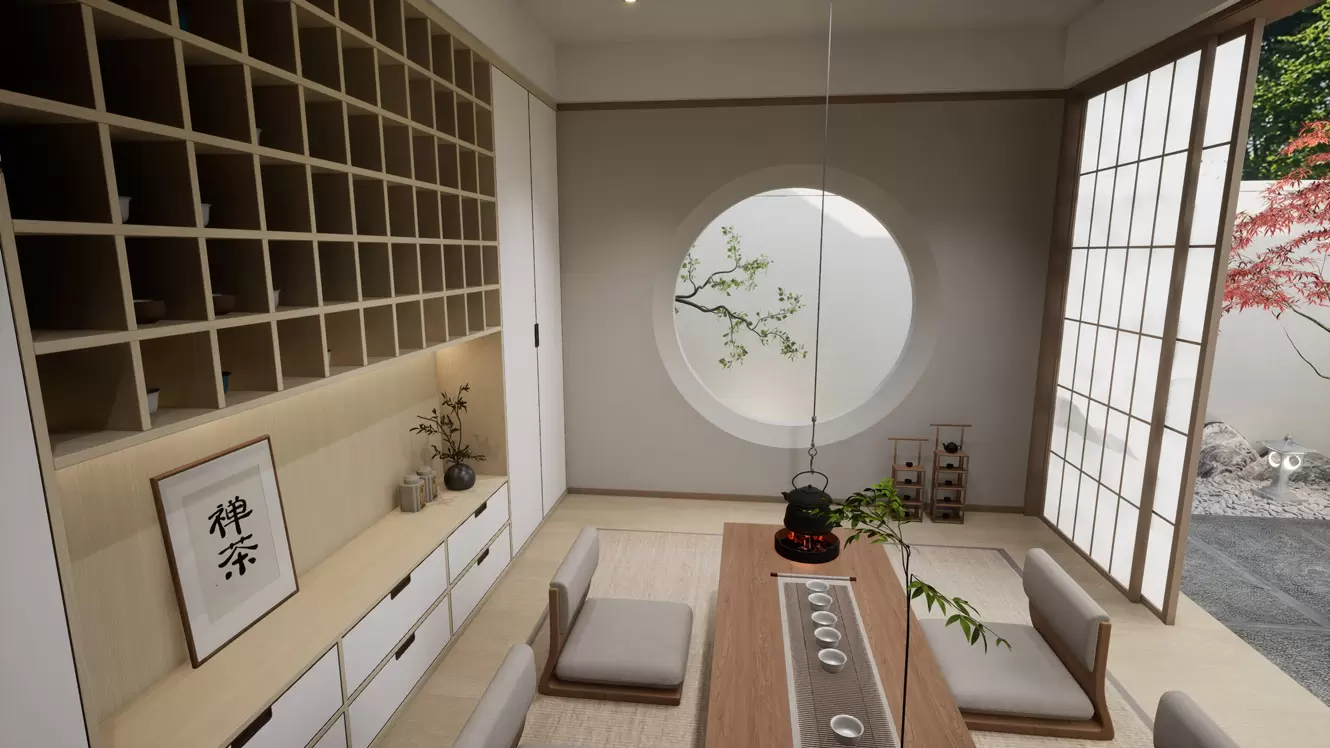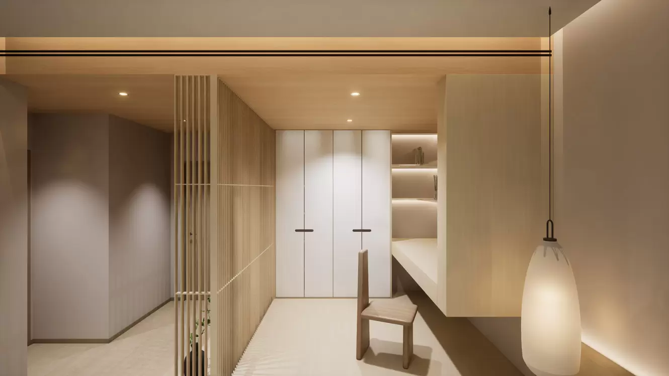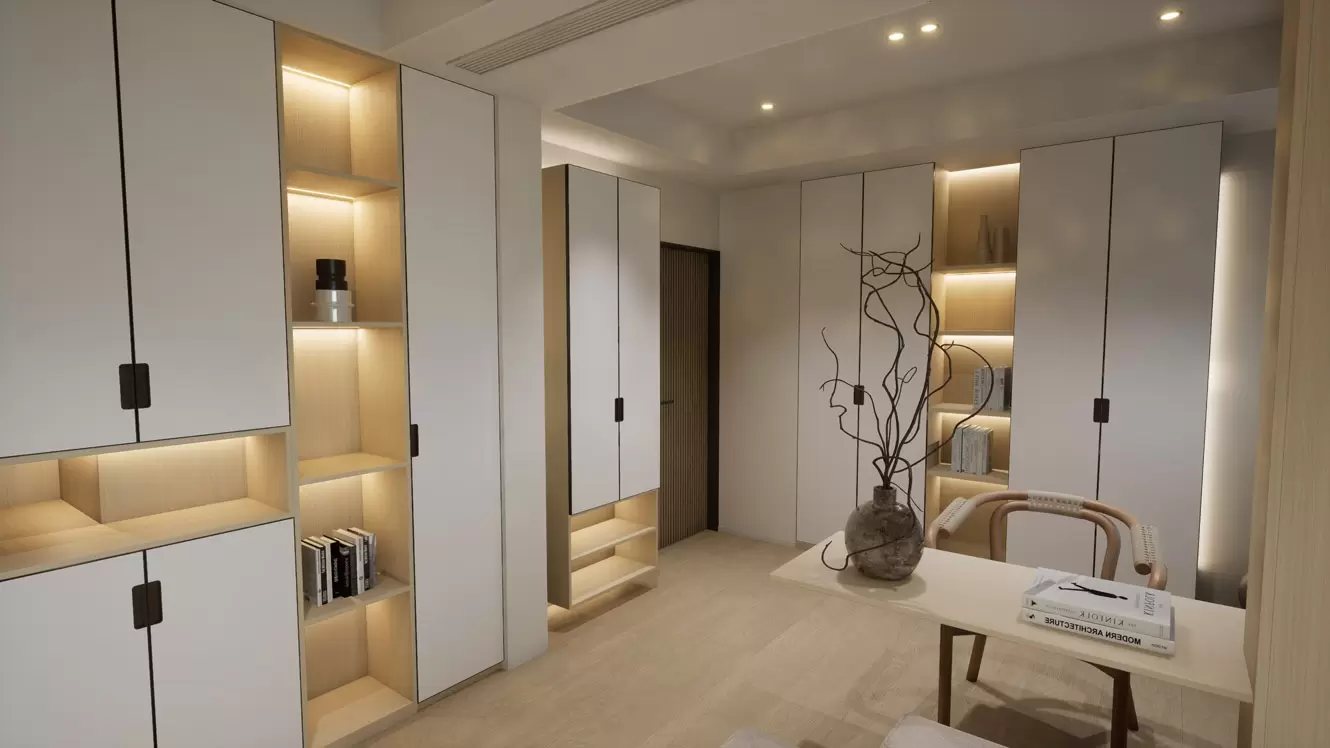 În livingul spațios, confortul întâlnește stilul, invitând oaspeții să se relaxeze într-o atmosferă unică. În prim-planul acestei narațiuni interioare se află decorurile alese cu meticulozitate, care conturează spațiul. Punctul focal în orientare verticală este fagul artizanal Sand. Suprafețele mari pe care le împodobește afișează căldura delicată a fibrei lemnului. În contrast, liniile orizontale din Charcoal Flow și 0190 SL Black conferă o prezență distinctă, dar rafinată, îmbrățișând scaunele moi din mijlocul camerei.